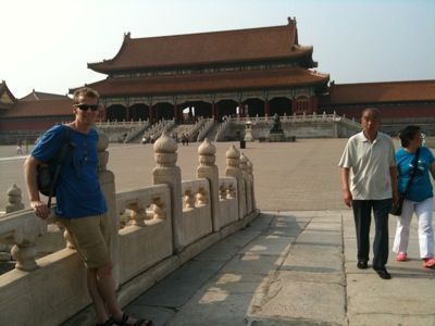 We checked out Tiannemen square this afternoon and caught the lowering of the flag ceremony at sunset. Lots of domestic tourists out doing the same thing. We had two teenage girls come up to us and start chatting. We weren’t sure if they were trying to sell us something, practice their English or if they were just being plain friendly. It was an odd experience.