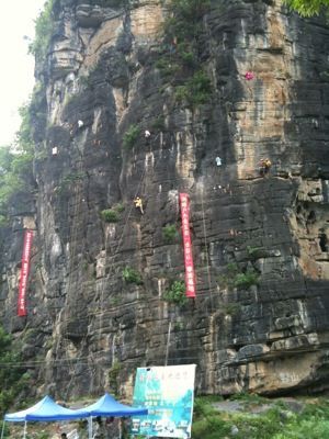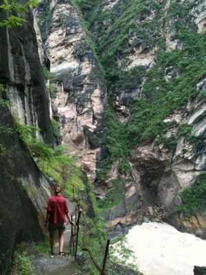 The minibus ride out to Dragon Gorge was long and made longer by a major traffic jam and having to wait to link up with another tour group. The 3 hour transfer turned into 4 hrs before we finally arrived at what looked like a theme park. The Chinese are great at taking something that is a natural wonder and converting into a tourist Mecca. To get up the the gorge you take a set of elevators climbing a few hundred meters inside a concrete dragon that is stapled to the side of the mountain – like having esculators up Table mountain. Once above the dam the scenery is unbelievable. Steep norrow gorges covered in vegetation. As you cruise around the valleys, stunning scenery eventually gives way to more traps (little bungee jump, high wire act, temples, viewpoints etc.)