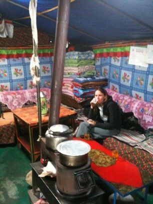 Dinner in our little tent was simple but excellent (not sure if the food was good or it just tasted good after the high) and shortly thereafter our host converted the chairs to beds complete with duvets and 3 layers of warm weighty blankets. Perfect. What a day !