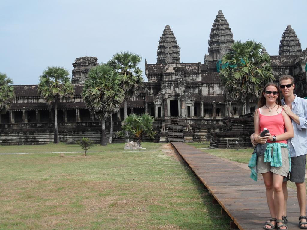 [Pictures: Us at Angkor Wat, we made it ! The Bayon Temple, Sim fooling about on Phimeanakas. The crowds on Bakheng]