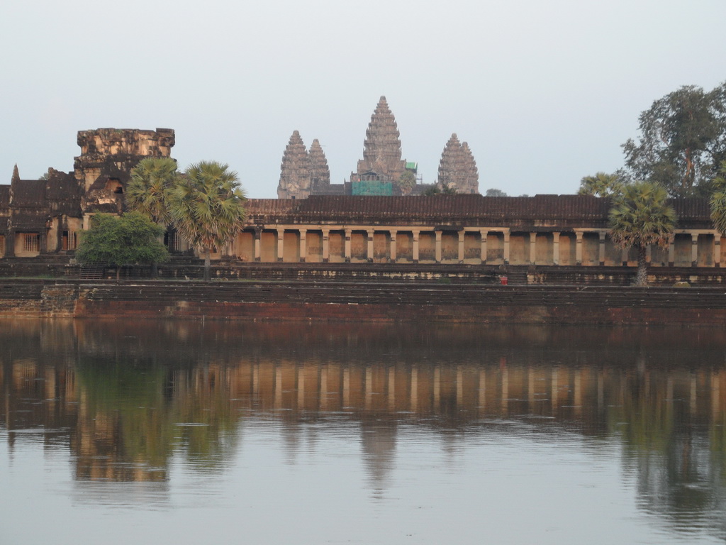 We eventually got the the airport exhausted and wet through with sweat. The place looked deserted. Security tried to assist us but in the end we discovered that to get a helicopter ride we needed to book with an agency in town. Arghhh! So it was back to Angkor for us. Odd that when you need one of the thousands of tak-taks you can’t find one (I guess they know the flight arrival times). I gave up trying to pedal with one leg after a few hundred meters and ended up switching bikes with V and pushing her all the way back to the Wat. We (well mainly me) arrived totally spent and collapsed on the moat wall to wait for sunset. When it finally arrived, the sunset was a little disappointing but we got a few shots and went in search of a tak-tak. There were dozens of them around the car park but all occupied or off duty save one (thankfully) We loaded up and headed home. What an afternoon!