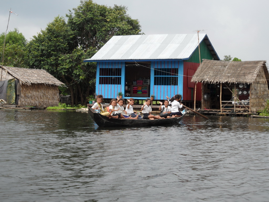 [Pictures: Kids on the way to school. In the driver’s seat of our ‘speedboat’]