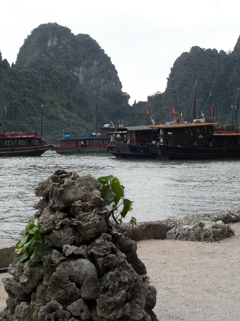 Even in the heavily overcast conditions the bay is still stunning. Over 3000 karst islands of varying sizes fill this UNESCO world heritage site. Unfortunately without the sun the water wasn’t close to the deep turquoise you see on postcards. Our first stop was the recently (1994) discovered Hang Sung Sot cave. Beautifully set out and lit for tourists even V enjoyed the space (not at all claustrophobic). Our guide led us through a bit of the history and pointed out the well known formations – more dragons, lions, frogs, turtles and bits of anatomy. All required little imagination.