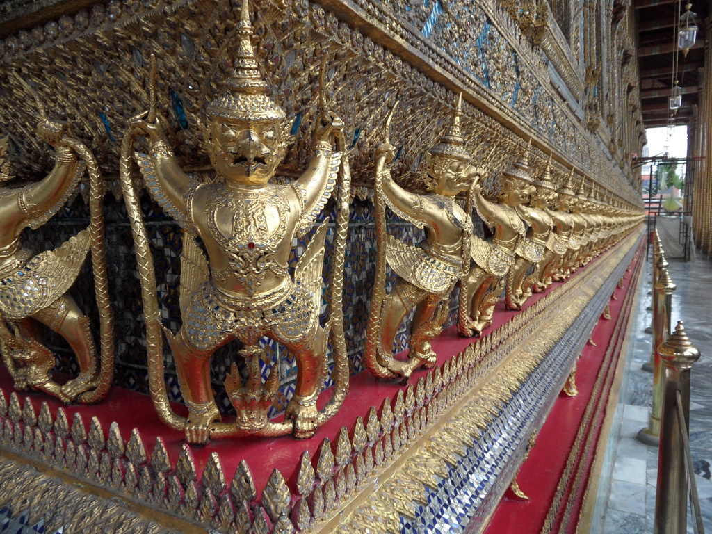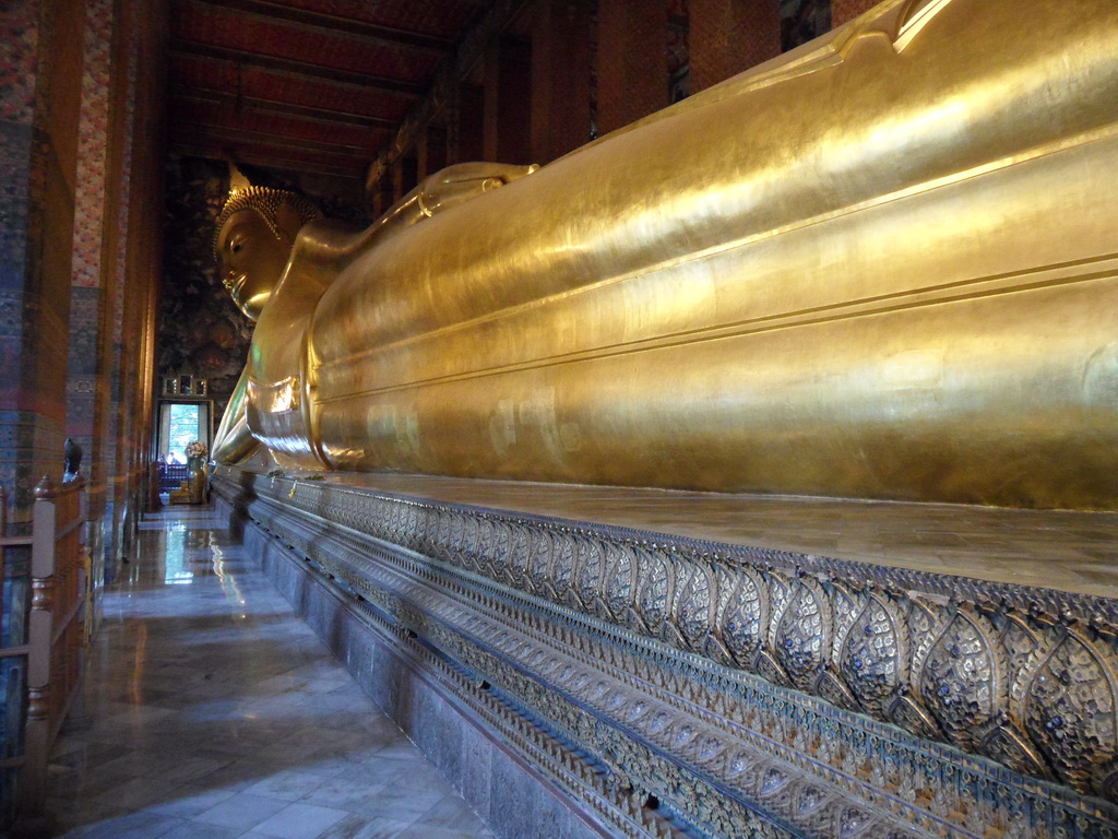 Okay. Day 3. Time to get serious about the sights (well just a little). We got to the Grand Palace and attached wats without trouble. The place is still amazing even with severe dejavue buzzing my brain. They are doing a lot of restoration work at the moment and I seem to remember it being much shinier close up but the overall effect is still one of WOW. Thankfully it was a little overcast and after walking our feet off around the Emerald (jade) Buddha, Grand Palace and museums we headed for Wat Pho and the Reclining Buddha. Still lazing about after 10 more years – same silly grin. It’s a hard life being an icon.