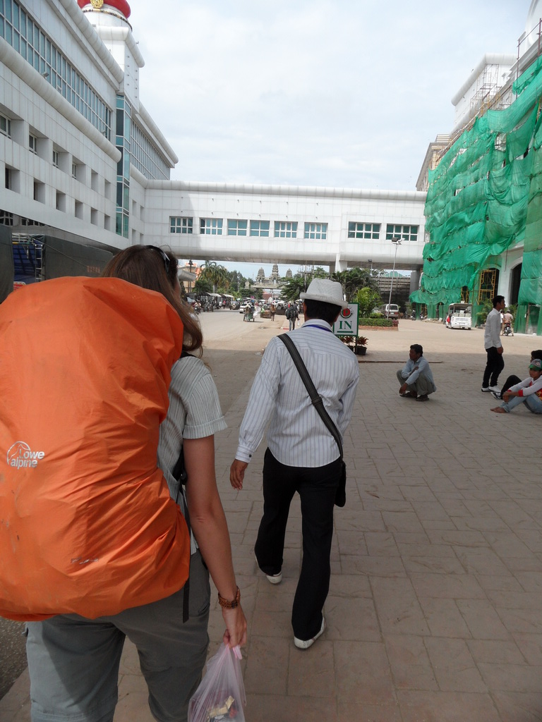 After an hour long wait we joined the passengers on the bus from Siem Reap and headed to the border. With a guide (supplied by the bus company) border procedures were simple. We had no problems and our anxiety over not having proof of flights/bus out of Thailand turned out to be unwarranted. The only downside of crossing the border by land is that we only got a 15 day visa. We like walking across borders. It just feels more real than being in a plane. No-mans land here houses a few casino resorts so that the Thais can pop out to gamble without having to enter Cambodia (casinos not allowed in Thailand – odd).