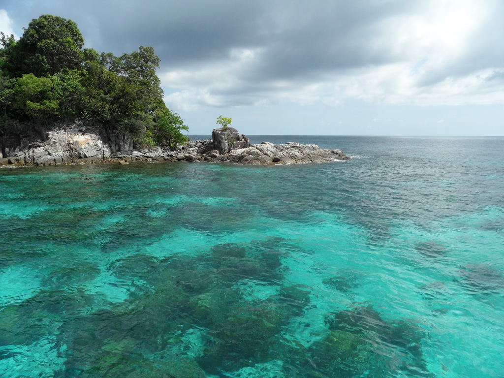 [Railay,Thailand] We were both looking forward to the half day, 4 island snorkelling tour we had booked. We got to the tour operators office early and it was still all shut up. Odd. We had breakfast and then at the designated time we moseyed on over to the office again. Still all shuttered up. There was a young French girl hanging around outside that we initally assumed was another tourist waiting but, who as it turned out to be, was our snorkelling ‘guide’. I use the term guide here in the loosest form as she turned out to be utterly useless. Gina informed us there was a problem with the big boat and we would be using a longtail instead. We were also the only two people on the tour today. No problem for us though, we were just hoping the grey rain clouds would wait till after we were done snorkelling.