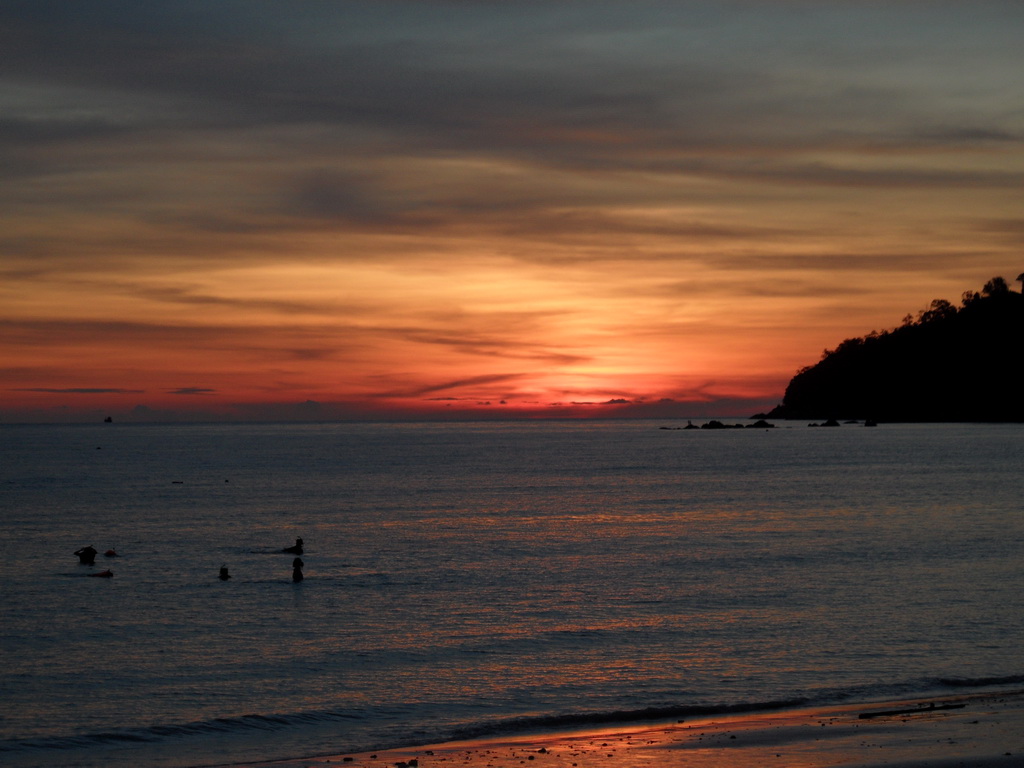 We have wandered down to the beach occasionally to explore the rocks, take a quick dip in the very warm sea or find some food. We’ve become regulars at the Pee Pee Bakery for a breakfast pastry and in the evening all the beach restaurants move their tables out onto the sands – a great spot for a beer shandy while the sun sets. We decided to do some more diving here so have had to tighten our meal budget a little (to the cheapest item on the menu) but probably still eating double what we ate in China.