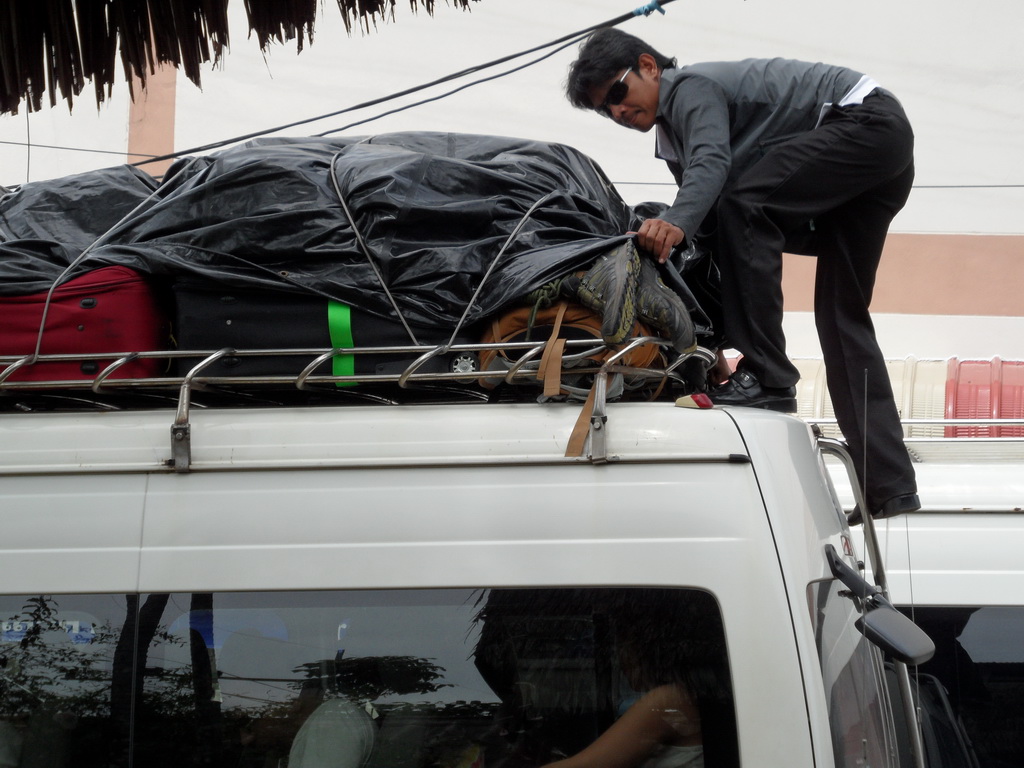 We were picked up from our hotel at 8am and the minivan took another half hour picking up people from lots of different resorts and then pfaffing with getting all the luggage on the roof. Sim and I are still chuffed that our bags are almost always the smallest.