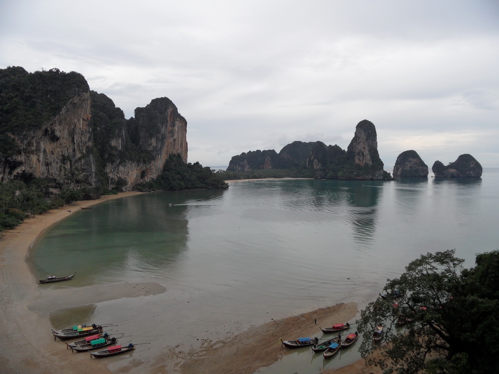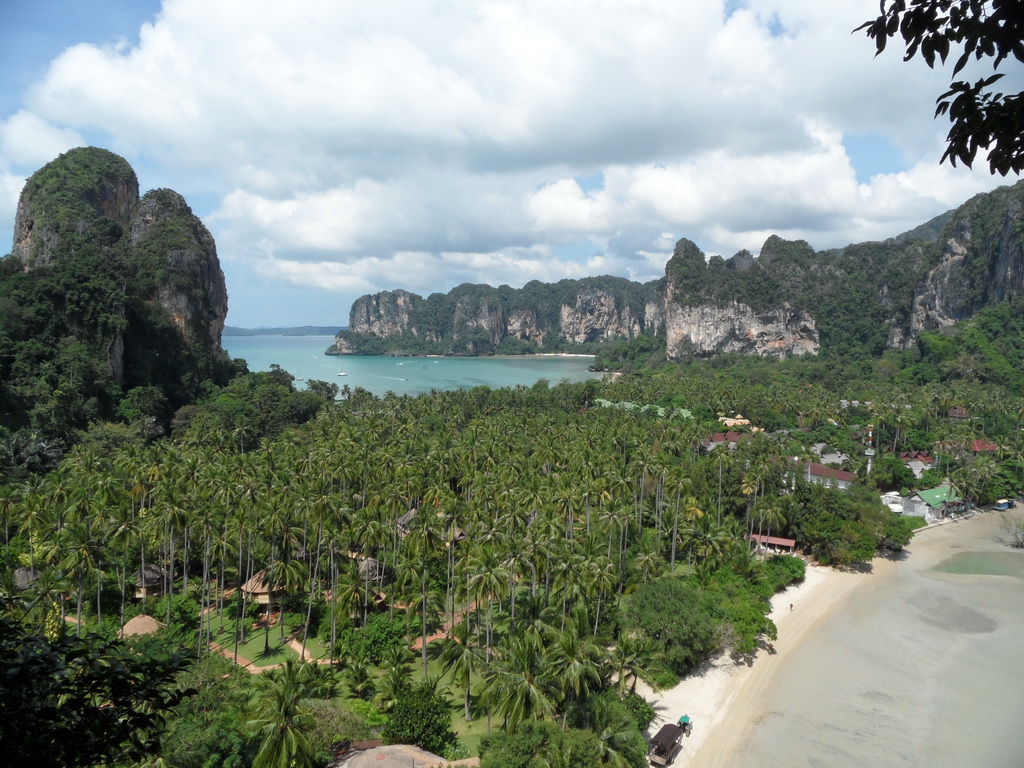 [Pictures: From the viewpoint over Railay. A typical longtail shot on Pra Nang. Could this be my old tree ?]