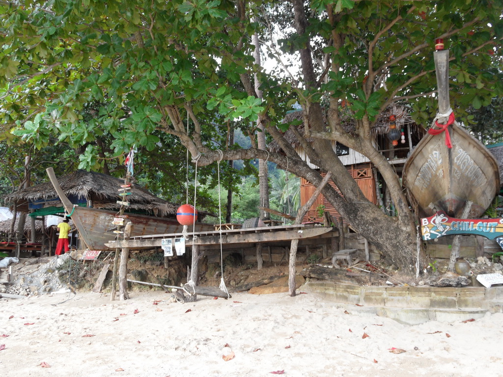 We were a little concerned about finding accommodation on Phi Phi (the place is always busy) but the touts at the dock had plenty to choose from and it was a relief not to have to schlep around looking for something. The hotel even came to fetch us and transport our luggage (first time that has happened). We’re happy with what we found (Uphill Bungalows) and it seems like a reasonable deal since we have hot water, aircon and most importantly free WiFi. We grabbed a quick bite and spent some time internetting ourselves in the bungalow. As luck would have it the wind and rains started up ferociously giving us no choice but to keep playing online (there is always something to download or news to read).