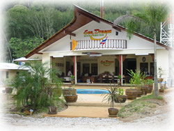[Khao Lak, Thailand] Yesterday, after a breakfast/lunch and a stroll along the stunnning beach just down the road from our hotel we hit the books. We were told that the theory homework for the PADI course should only take us 5 or so hours. By the time we had complted a third of the material it was dark outside. We are either just incredibly slow after not having used our brains for 6 months or are taking it too seriously.
