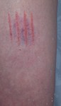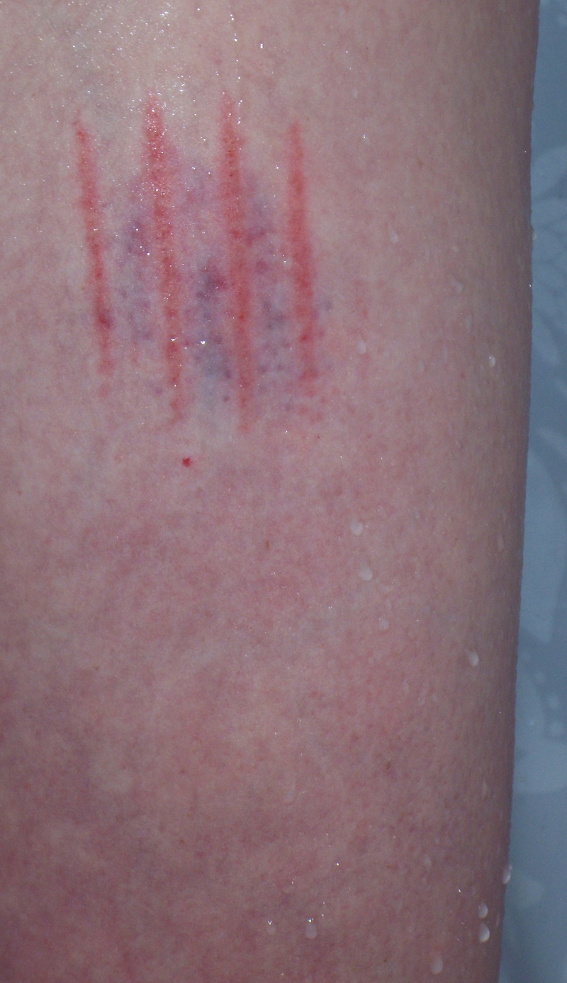 V was pretty sick with a cold and should not have been out on the trail. Everyone knows that wolves can spot invalids. One seems to have gotten hold of her – tis but a scratch. Bad chain-ring !
