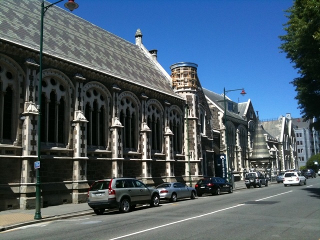 John was kind enough to loan us a car for the week so we got to check out Christchurch. We spent an entire day cruising the neighborhoods of the city just getting to know the place. It’s small but has everything we need. Lots of green space and the ‘old’ centre make the place picturesque. Most importantly we scouted the gear shops. Outdoor, Climbing, snowboarding and mountain biking – plenty of choice and a comparison of the snowboarding gear shows it’s the same price as Backcountry (when it’s on special). Happeeeeness. The local climbing gym is great – I loved the textured walls and the grigri fixed to every toprope.