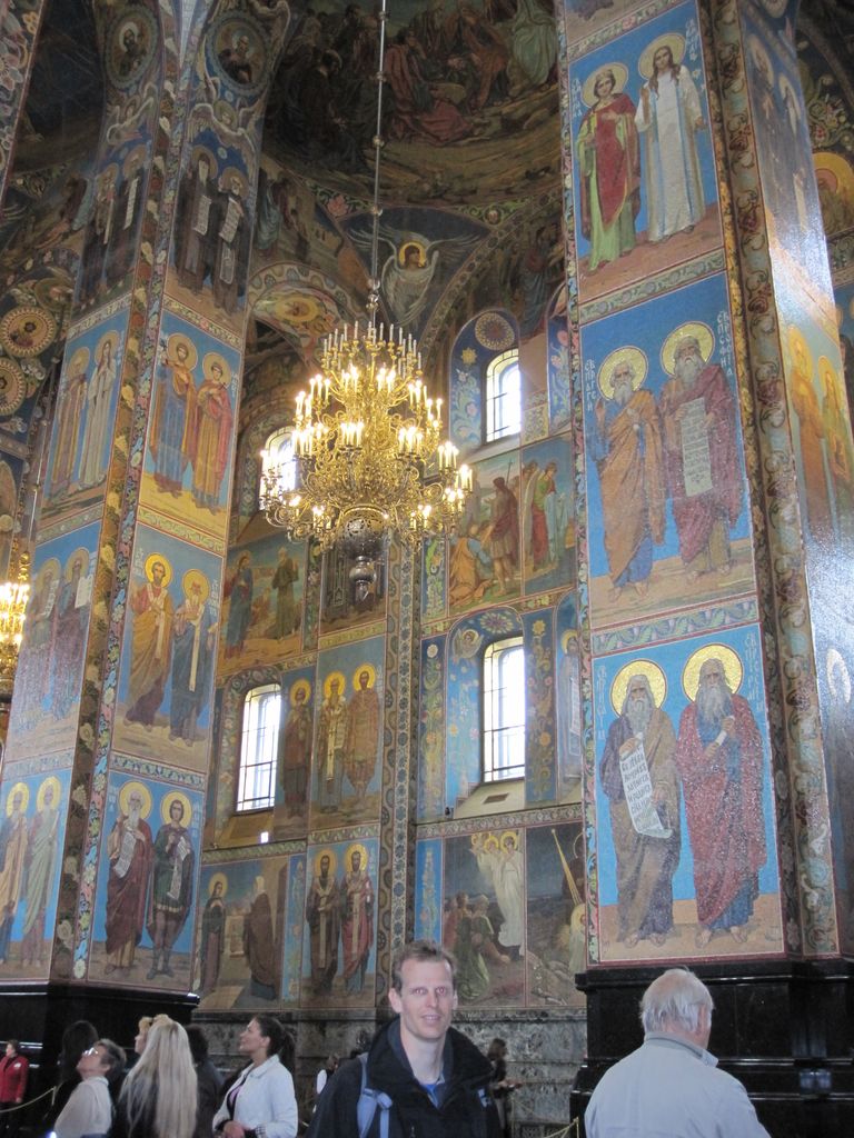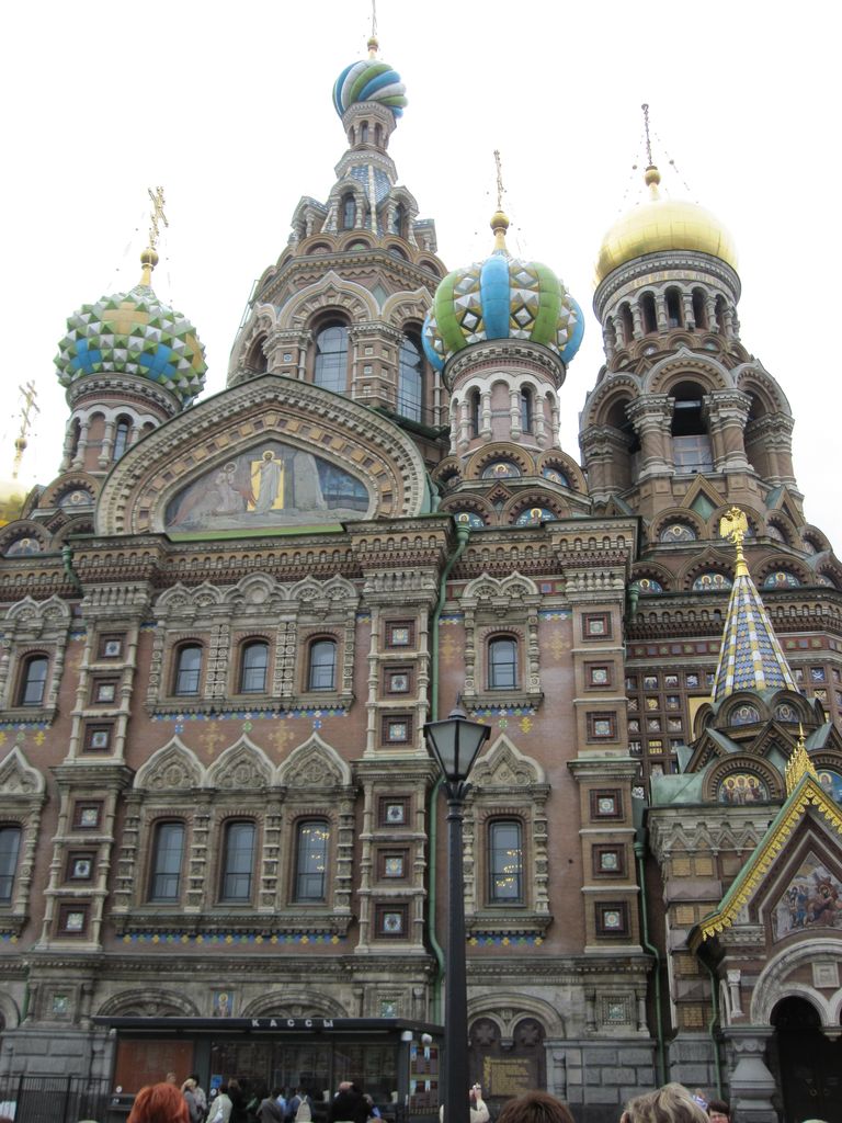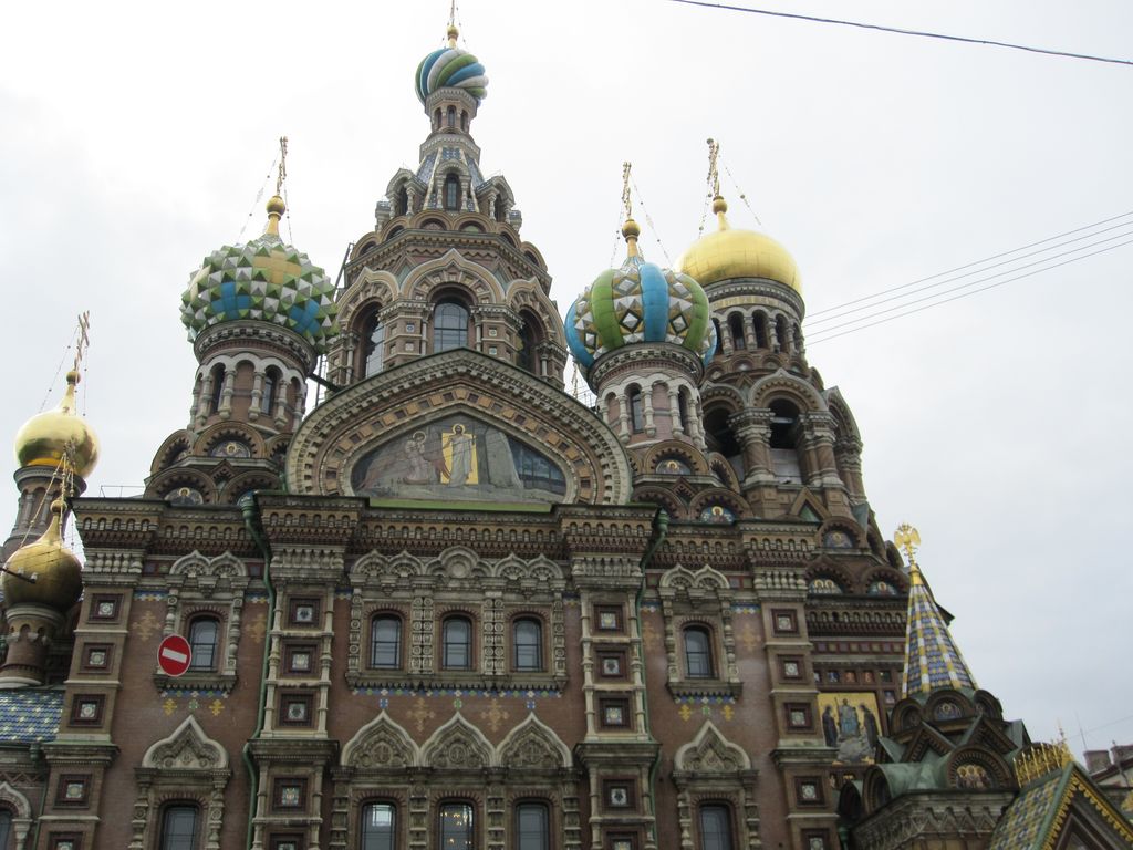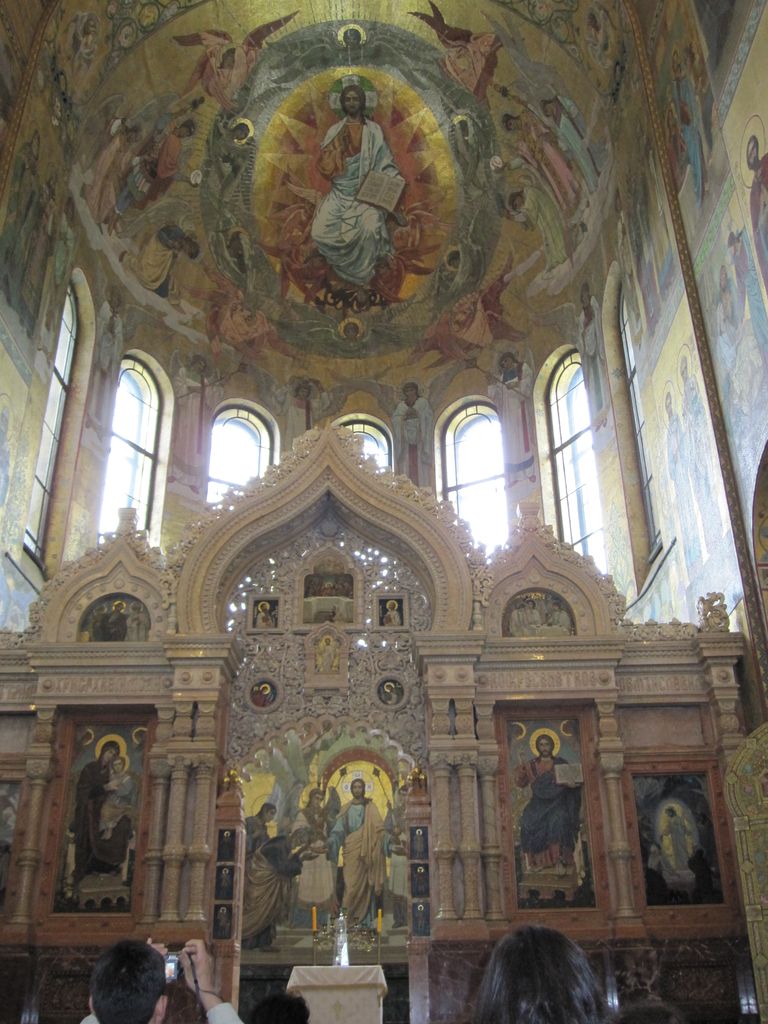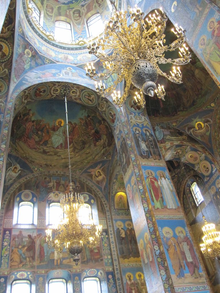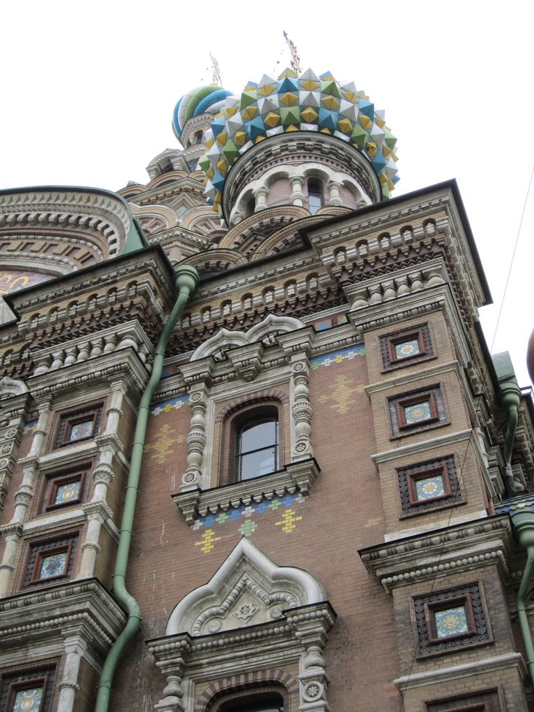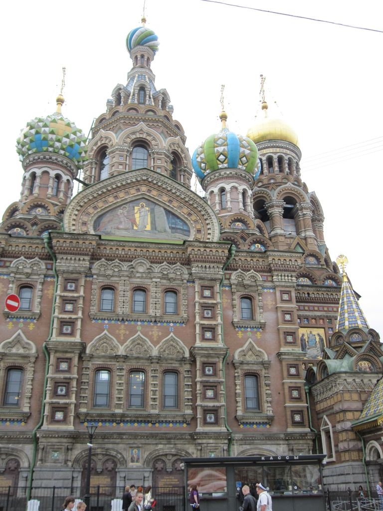 First stop was a walk to ‘The church of the resurrection’ also known as ‘The church of the saviour on spilled blood’ and a dozen other variations. Our first encounter with whacky Russian churches with domes that look like flavoured soft-serves. Impressive outside, grand inside (typical).