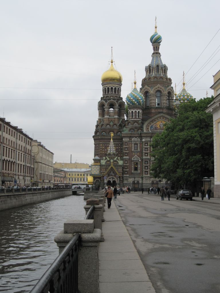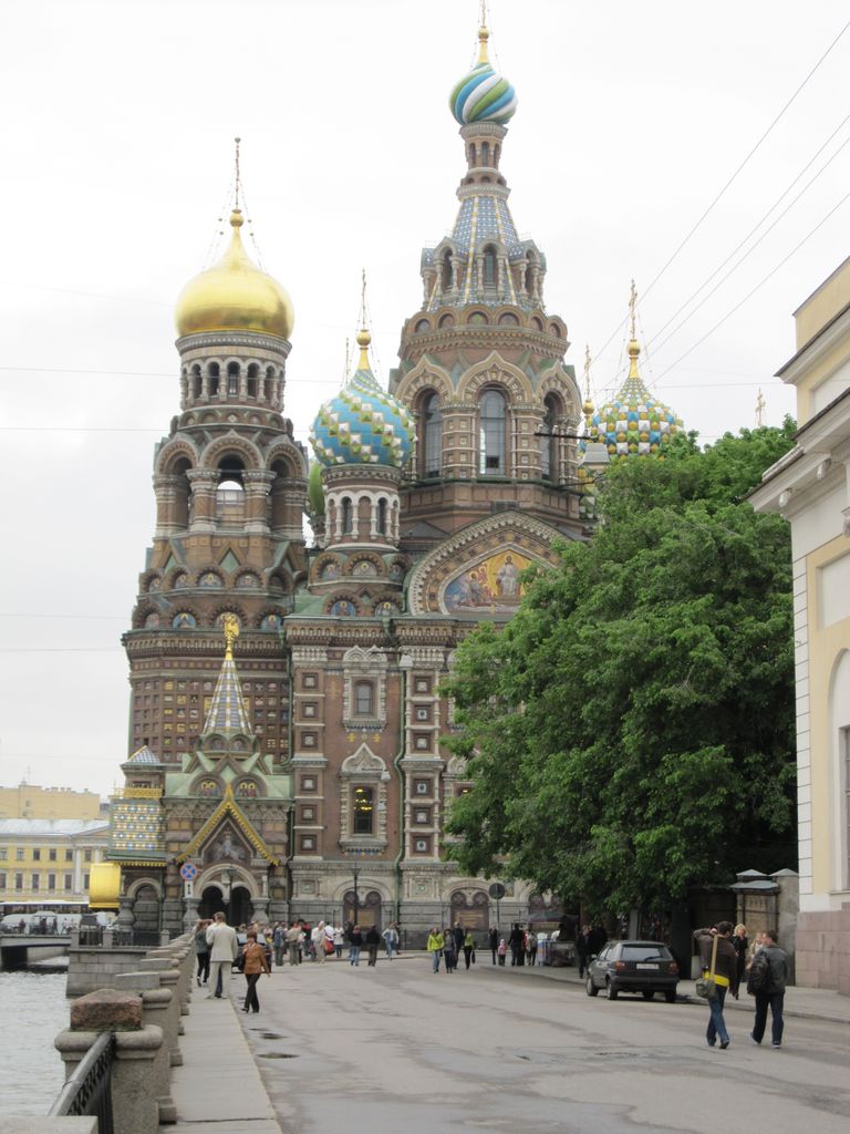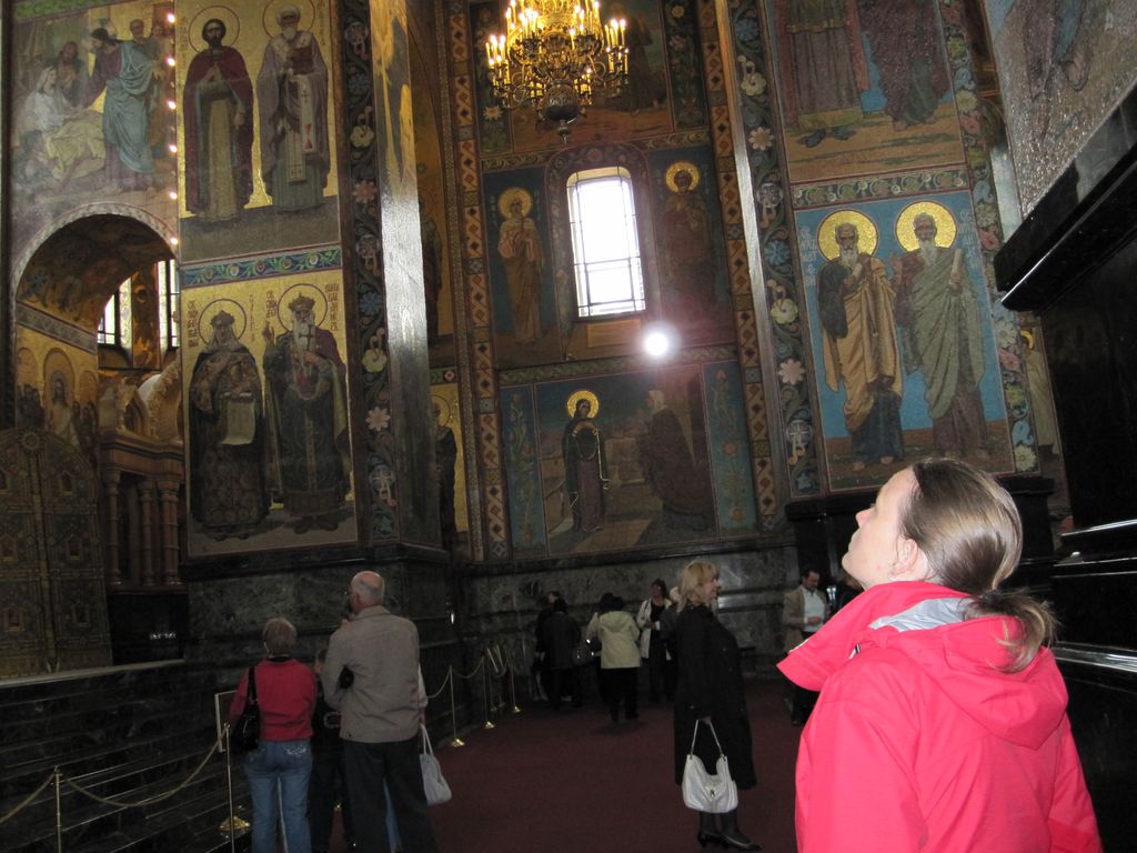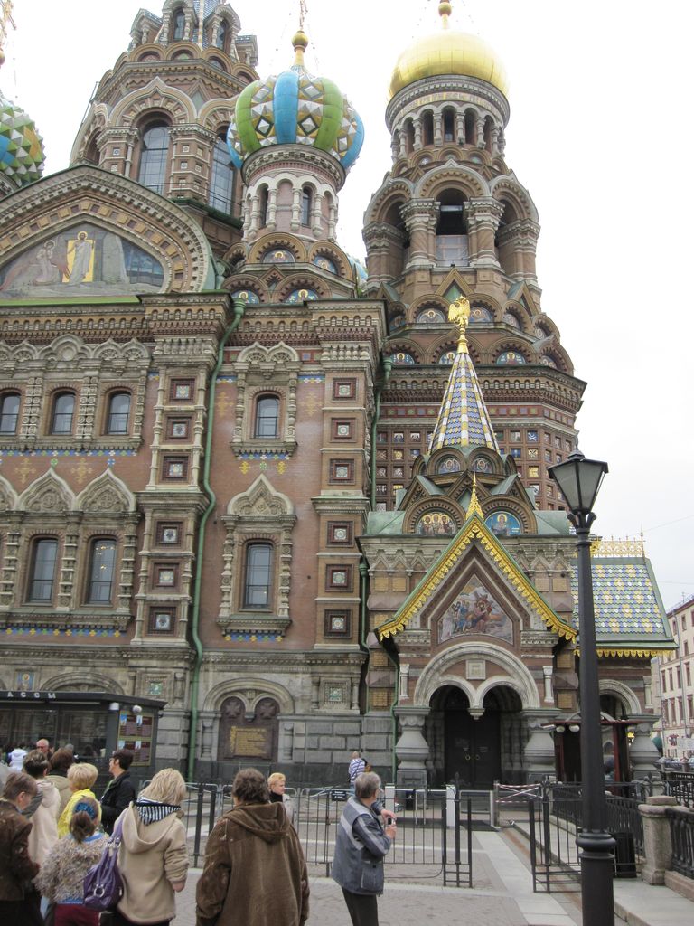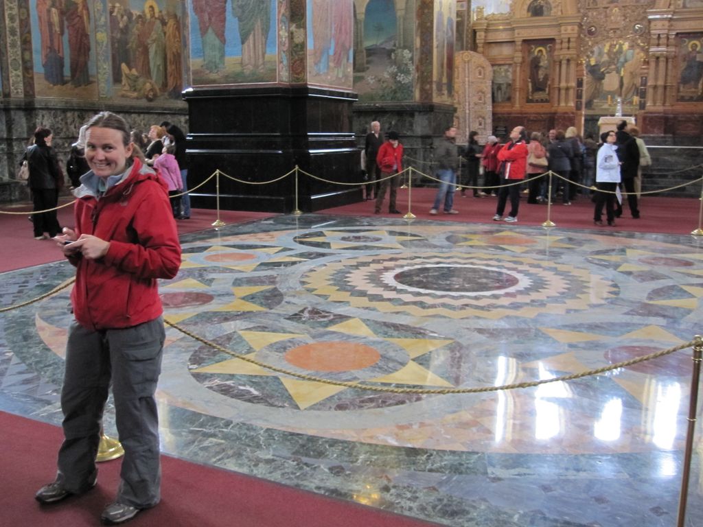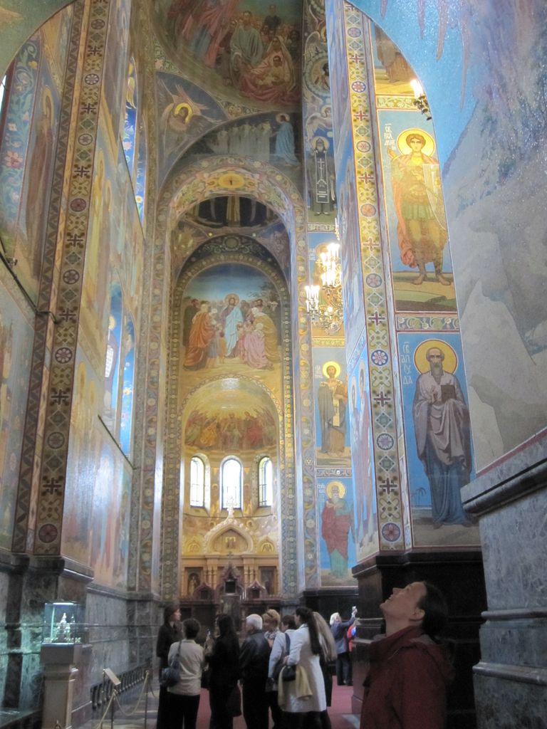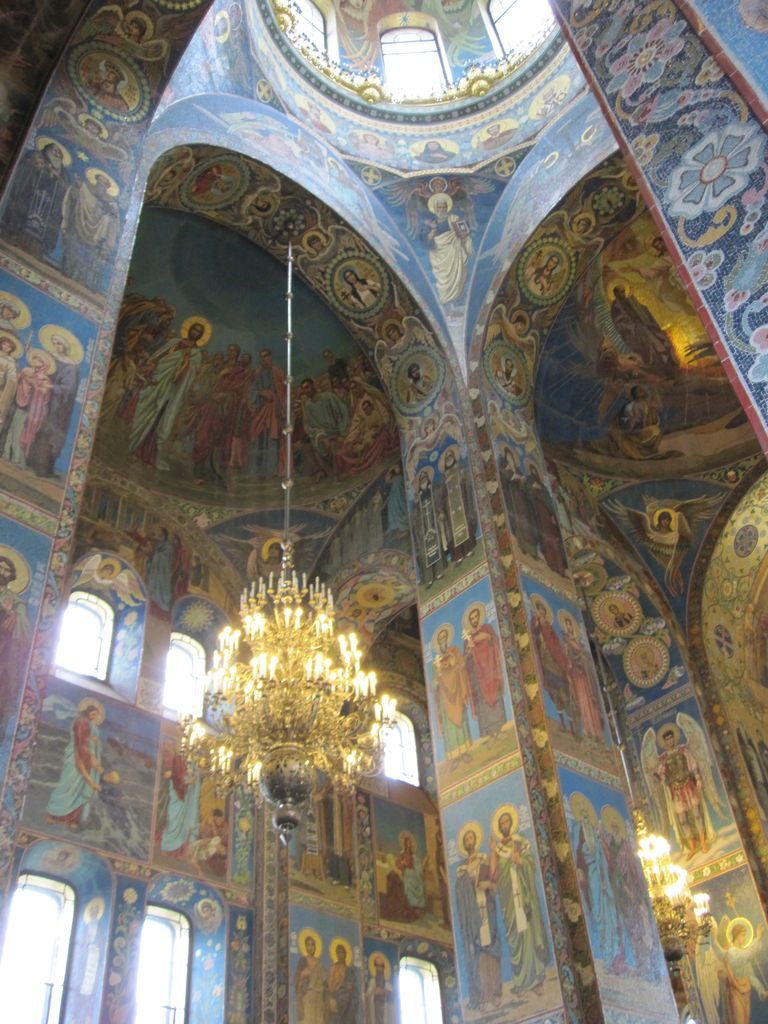 First stop was a walk to ‘The church of the resurrection’ also known as ‘The church of the saviour on spilled blood’ and a dozen other variations. Our first encounter with whacky Russian churches with domes that look like flavoured soft-serves. Impressive outside, grand inside (typical).