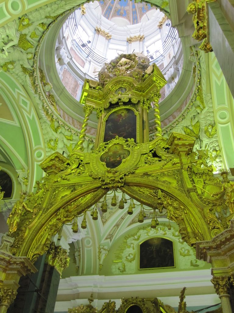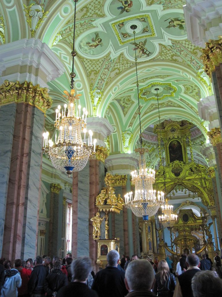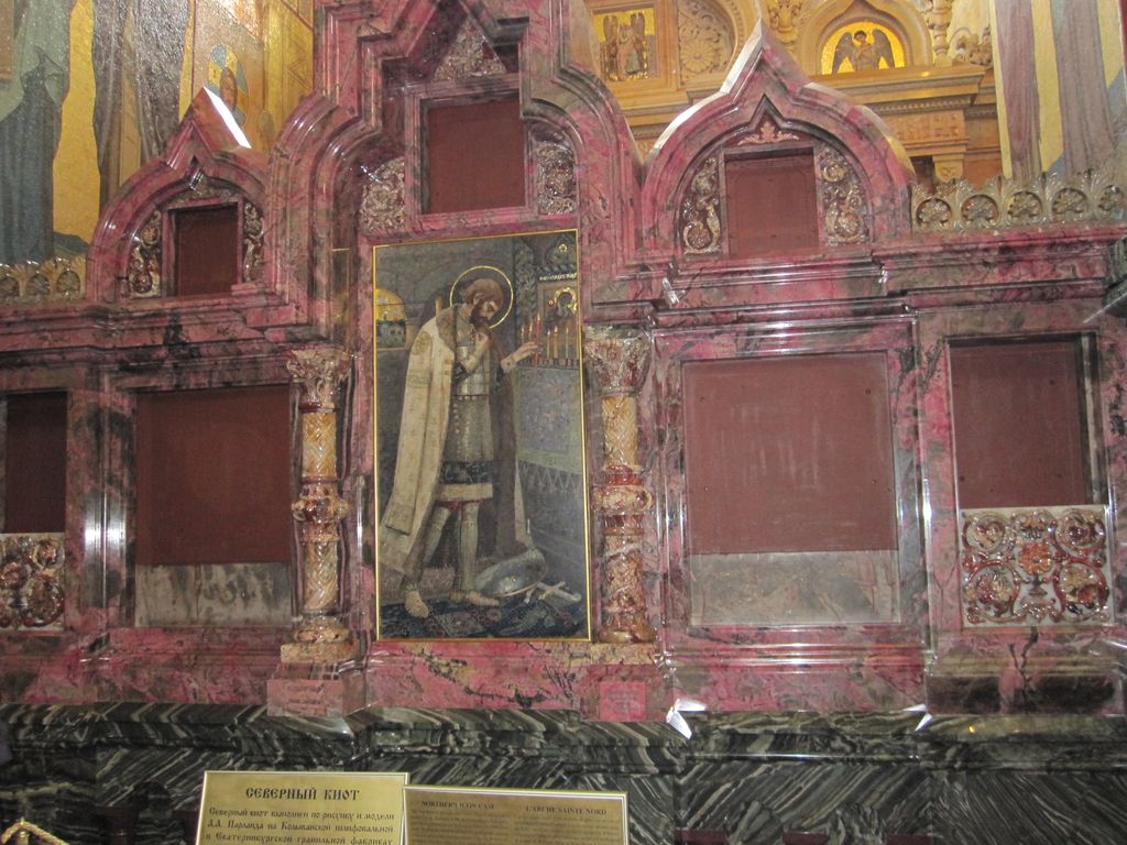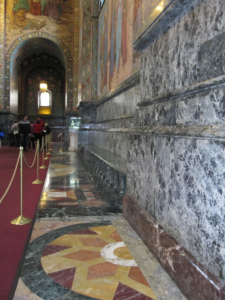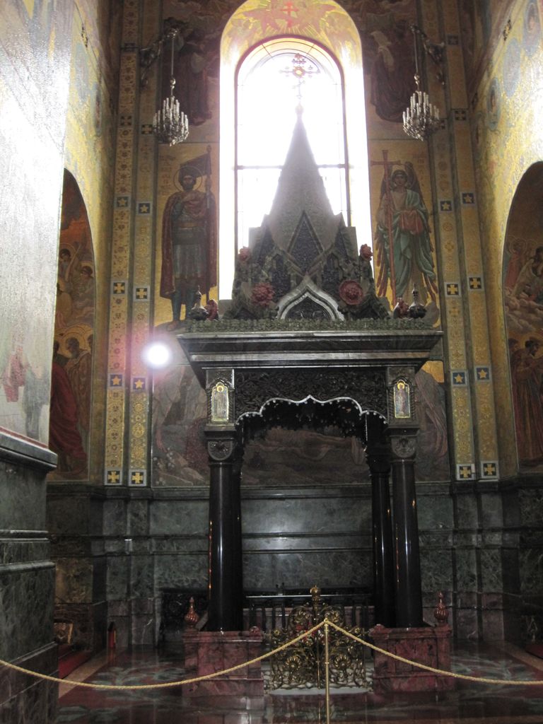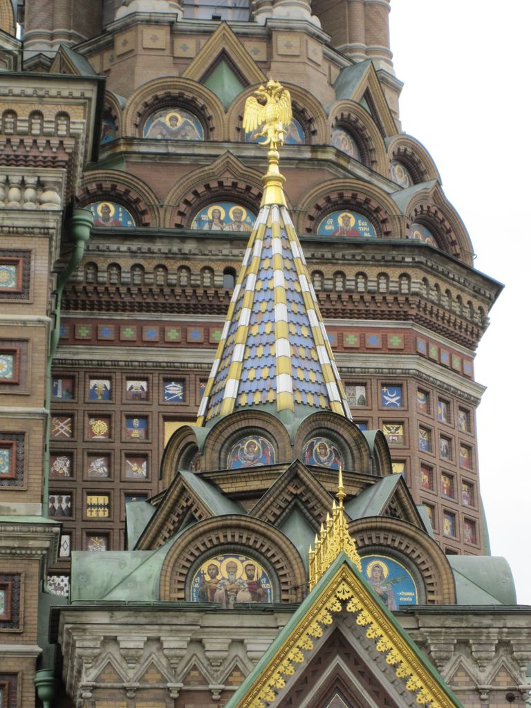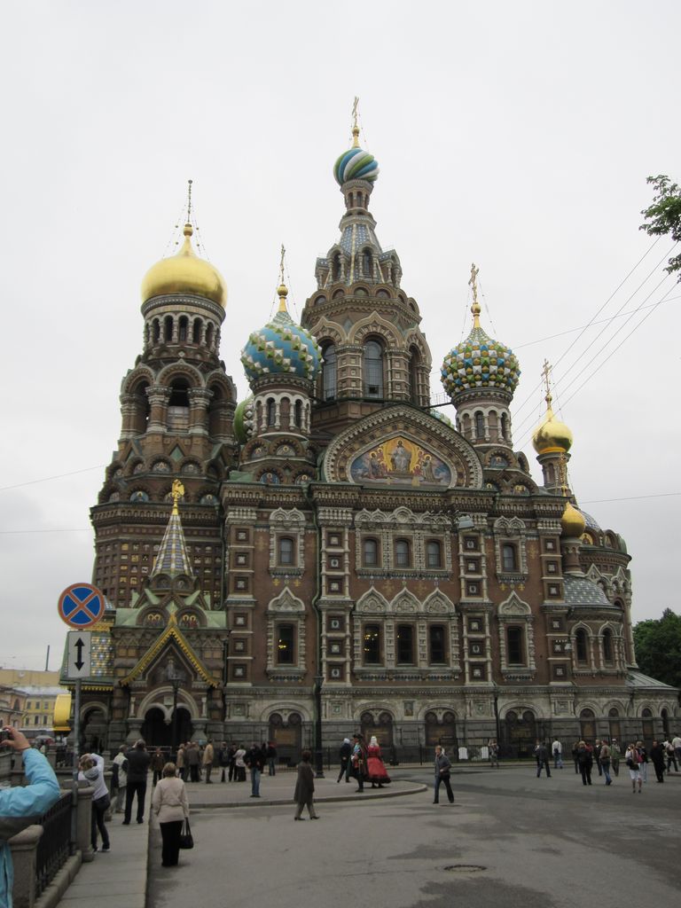 First stop was a walk to ‘The church of the resurrection’ also known as ‘The church of the saviour on spilled blood’ and a dozen other variations. Our first encounter with whacky Russian churches with domes that look like flavoured soft-serves. Impressive outside, grand inside (typical).