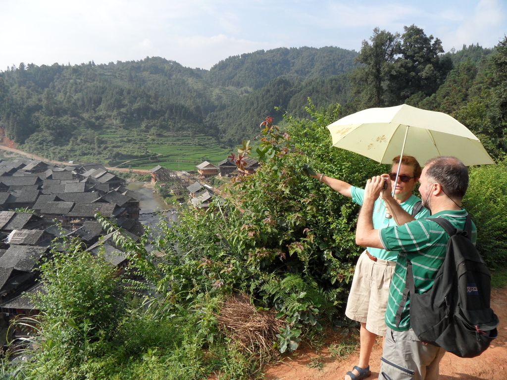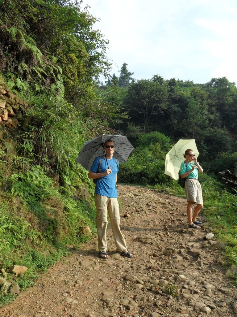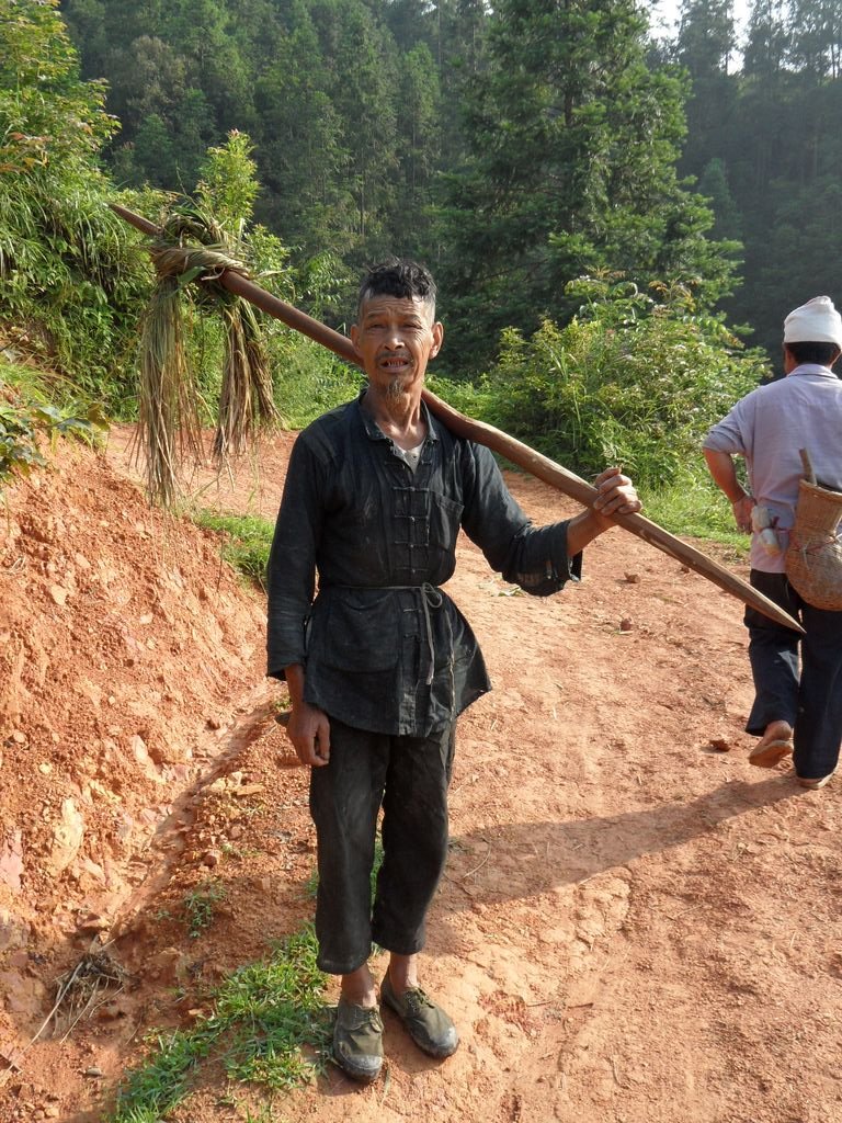 We initially planned to stay until late afternoon but by 10 we had exhausted the potentiometer for exploration leaving us with the problem of getting out of town. Hitching was out of the question as we had not see a single vehicle all morning and ordering a taxi from the city would mean a two hour wait if we could make a call and get someone to understand. We were desperate enough to consider hiking the 7km to the next village but thought it too hot. The only option was to ask our host for help again. Thankfully he was not holding any grudge after last nights disagreement and with the help of a cell and his brother he arranged another mini-bus within 20 minutes. The vehicle was in shocking condition – seats in the rear were all broken and the most essential piece of equipment for driving in China (the hooter) was missing. We didn’t care – we just wanted to get out of there. I sat on my pack for the entire bone crunching ride while R&S tired to utilize the collapsed seats. V had the ‘comfy’ front seat which was probably the most terrifying going around hairpin blind corners with a 1000m drop just centimeters away.