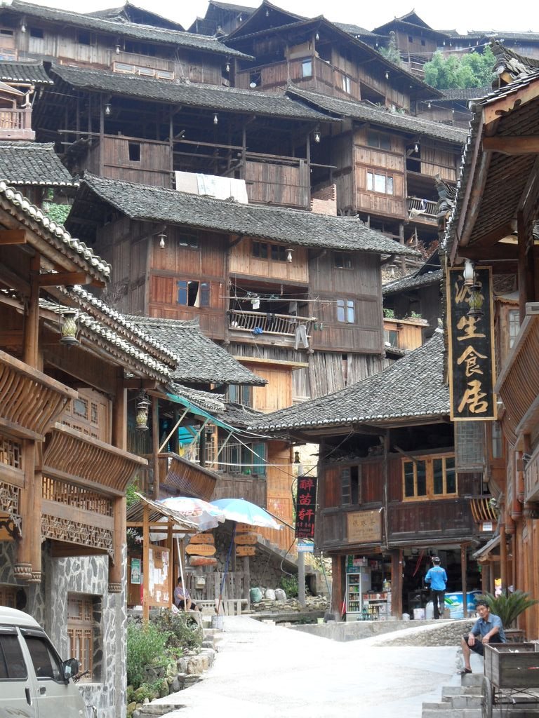 The village is a bit of a mix. It is obvious that the lower flat section along the river was once rice paddies but has been converted into a typical Chinese tourist trap with trinket shops, restaurants and continuous ‘traditional’ performances. It’s not bad but a million miles from yesterday. The upper part has held onto a lot of its charm and character while being kept clean. Upgrades have been done carefully so as not to destroy the aesthetics (eg. rubbish bins look like tree stumps, concrete structures are painted to look like wood).