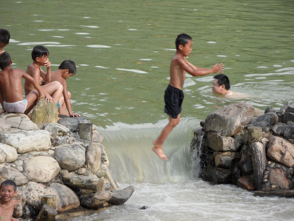 It was great to wake up feeling refreshed for a change. My legs have been taking strain lately with mosquito bites (they leave V alone when I am around) and being in a ‘hotel’ last night gave me a much needed break from being munched. We caught the 9am bus (£1 – BTW when I write prices they are normally per person) out to Xijiang – another hour and a half on windy roads with stunning views but at least the road was in perfect condition – we were obviously on our way to a popular place.