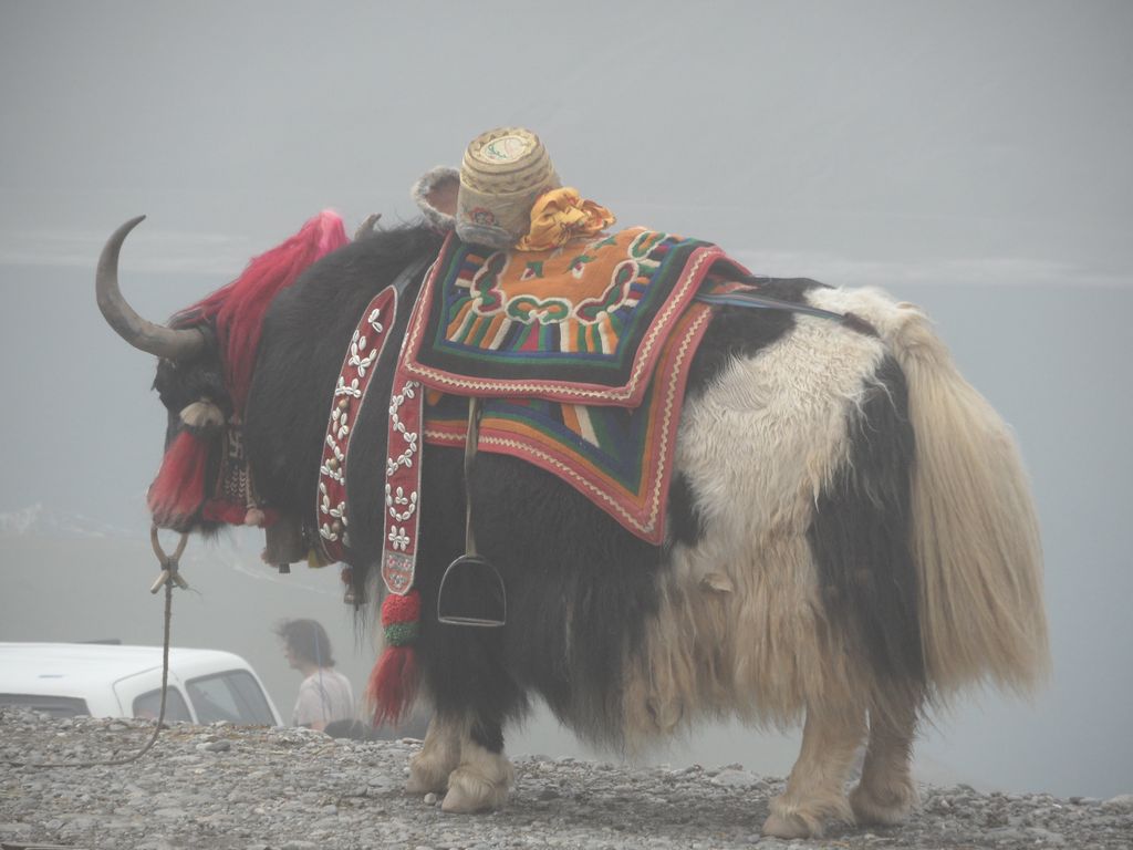 About 4 hours in we reached the top of a pass which had views of Yamdrok lake. It was freezing up there and the lake view was obscured by cloud. Of course we had to buy tickets just for driving past the lake and to my annoyance, pay for the filthy poo plastered toilets. We also encountered what was to be at every stop, hawkers trying to sell stuff.