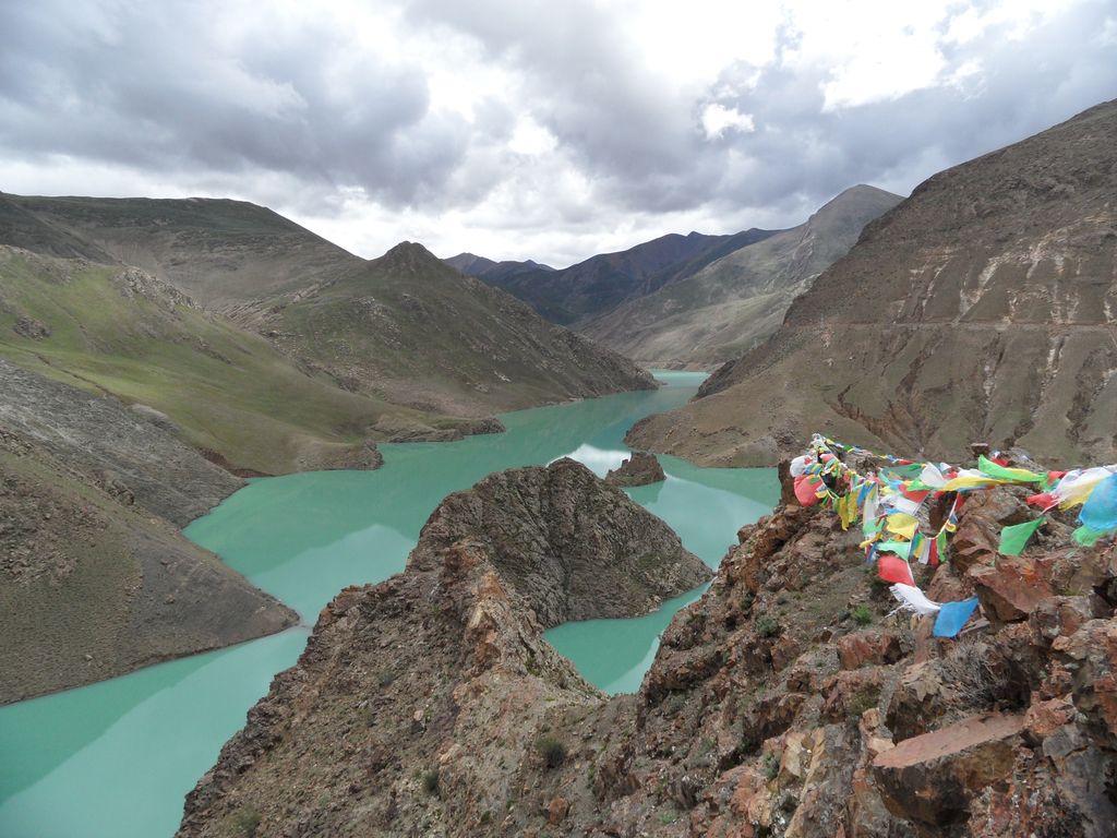 We carried on and stopped at another point much further :gps:(GPS)::29.16094::90.50997:gps: on where the colours of the water were more striking and spent ages taking photos. Something to be noted is that at almost all the stops there were prayer flags plastered over everything, rocks, pylons whatever they could be attatched to and coloured prayer confetti ( 50mm x 50mm coloured pieces of paper with prayers printed on them) littering the ground. Plus the usual trash left by the people who stop at these points to take pictures or go to the toilet.