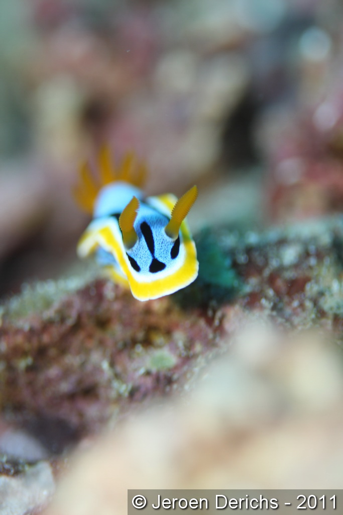 Our first dive and a new record depth for us at 30.5m. Seems the DM was confident in our ‘Open Water’ abilities. It was a little unnerving being that far down, looking up and realizing our predicament. V was barely bothered – she was just having too much fun. Not to much in the way of big stuff to see but I did spot a Nudibranch patch with 9 individuals. By the end of the second dive we were getting a little cold with the overcast skies but were enjoying the different dive sites. Coral Garden was incredible.