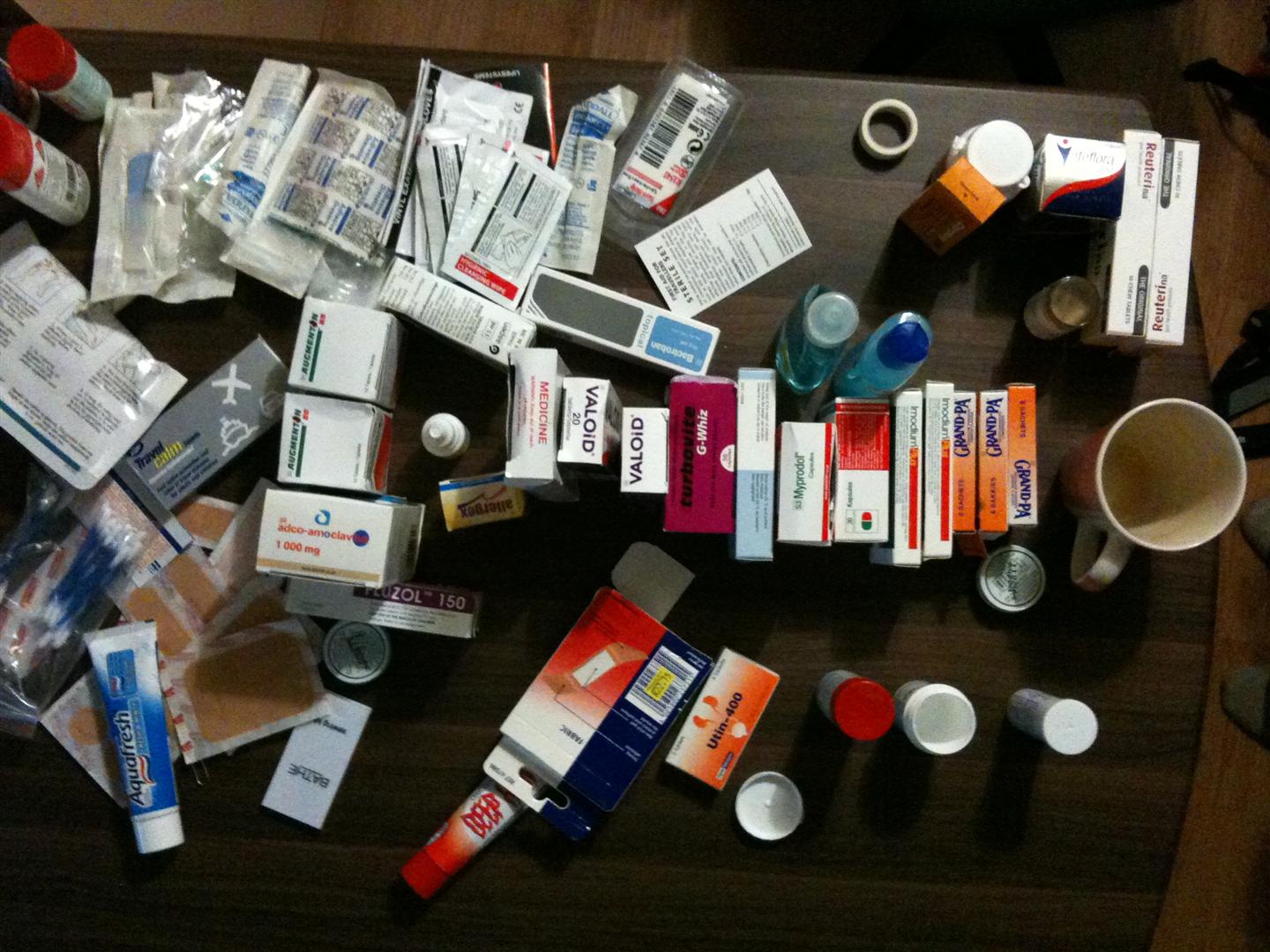 The plan was to check out Kickass the movie but the new Dr. Who called us home early (it was excellent – but I miss David Tennant). We decided to to a ‘test’ pack of our gear and get a final idea of what we need to get and what we are taking. It went well. Taking the lightest possible outfit out of our gear (ie: strops, shorts and a T-shirt) we were still able to get the rest of our kit into our packs (30l and 35l ), but it is a tight fit. We spent a good hour sorting the pile of meds we have been collecting – we could open a pharmacy ! But also got that down to a tiny first aid kit and our personal toiletry bags.